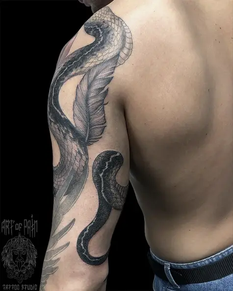 Татуировка мужская ньюскул на руке змея (Анастасия Родина) 7296