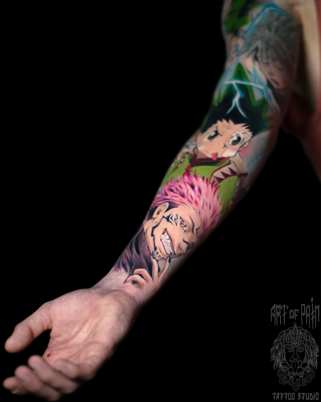 Татуировка мужская нео-трад тау-рукав аниме (Дмитрий Шейб) 7397