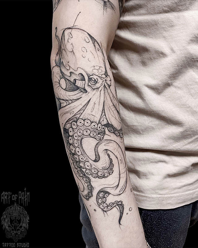 Татуировка мужская графика на предплечье осьминог (Мария Котова) 7408
