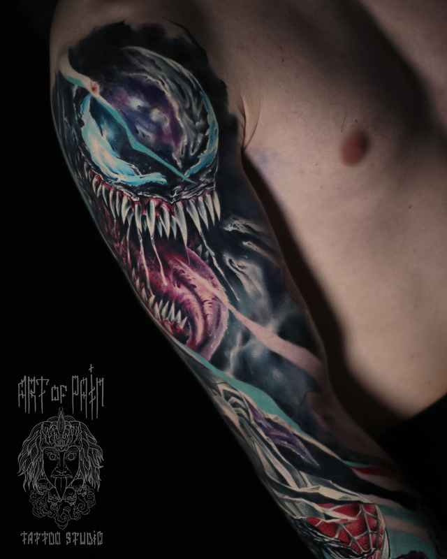 Татуировка мужская реализм на плече Веном (Дмитрий Шейб) 7418