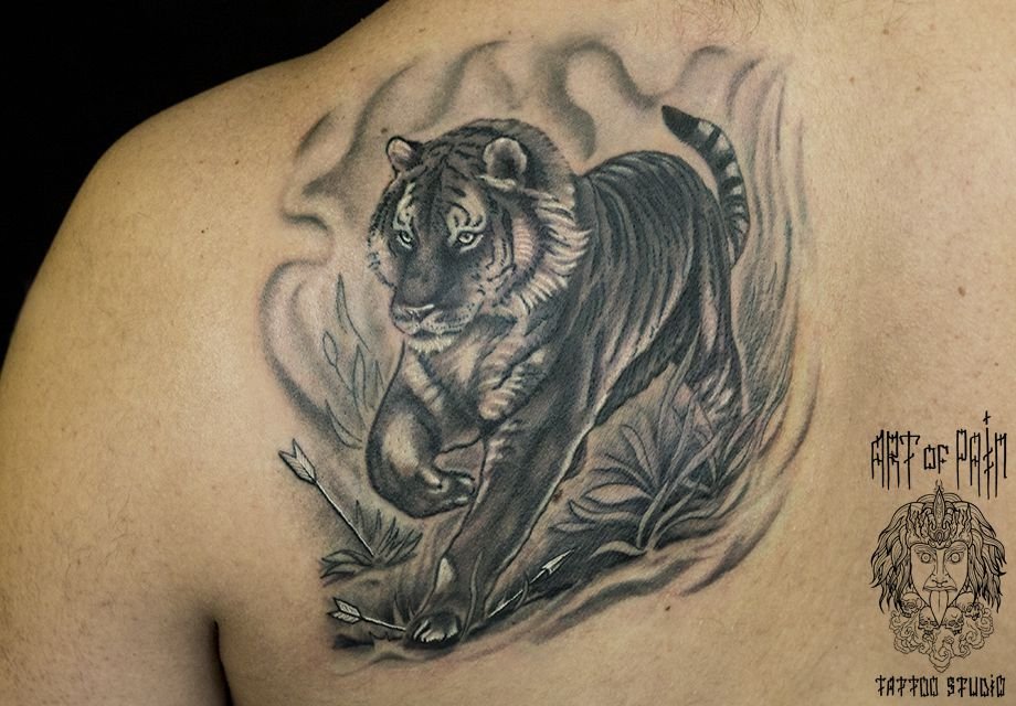 Татуировка мужская реализм на лопатке тигр 748