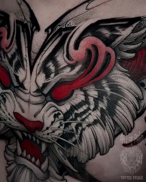 Татуировка мужская япония на груди тигр и огонь (Денис Марченко) 7499