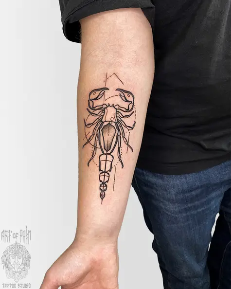 Татуировка мужская графика на предплечье скорпион 7509