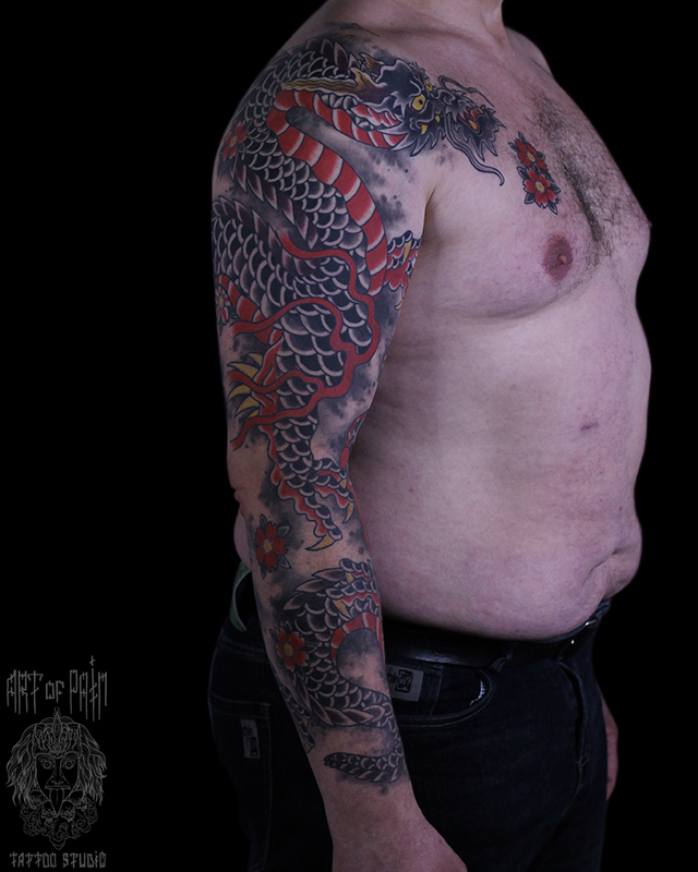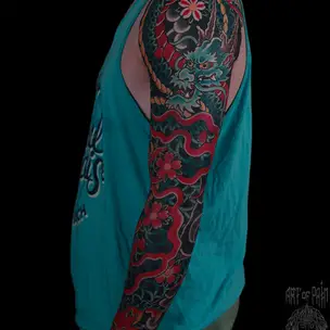 Татуировка мужская япония тату-рукав дракон 7527