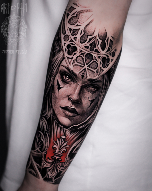 Татуировка мужская реализм на предплечье девушка (Слава Tech Lunatic) 7543