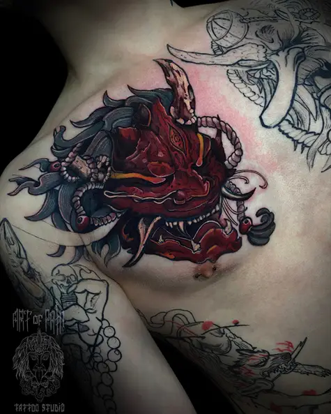 Татуировка мужская нео-япония на груди Они (Кирилл Плотников) 7559