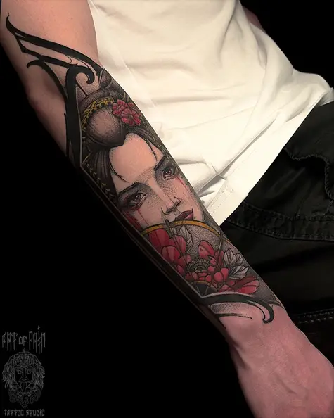 Татуировка мужская нео-япония на предплечье гейша (Денис Марченко) 7572
