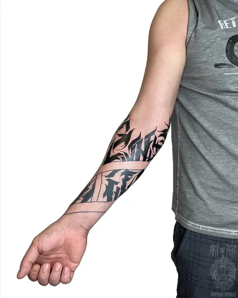 Татуировка мужская графика на предплечье узор 7613