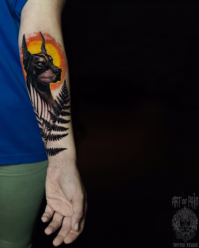 Татуировка мужская реализм на предплечье доберман (Анастасия Юсупова) 7661