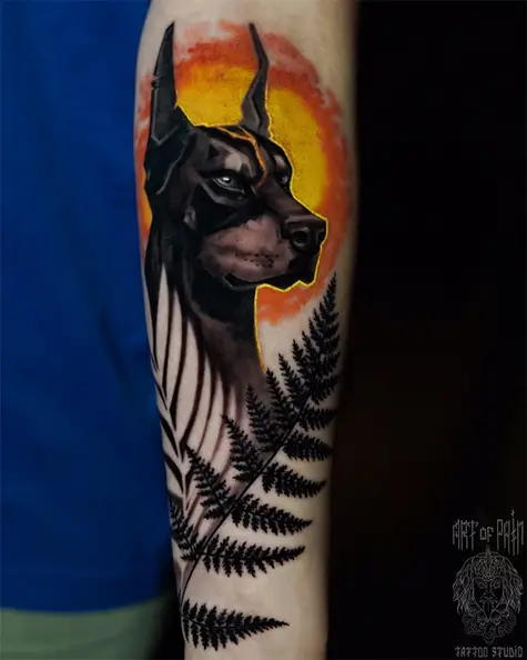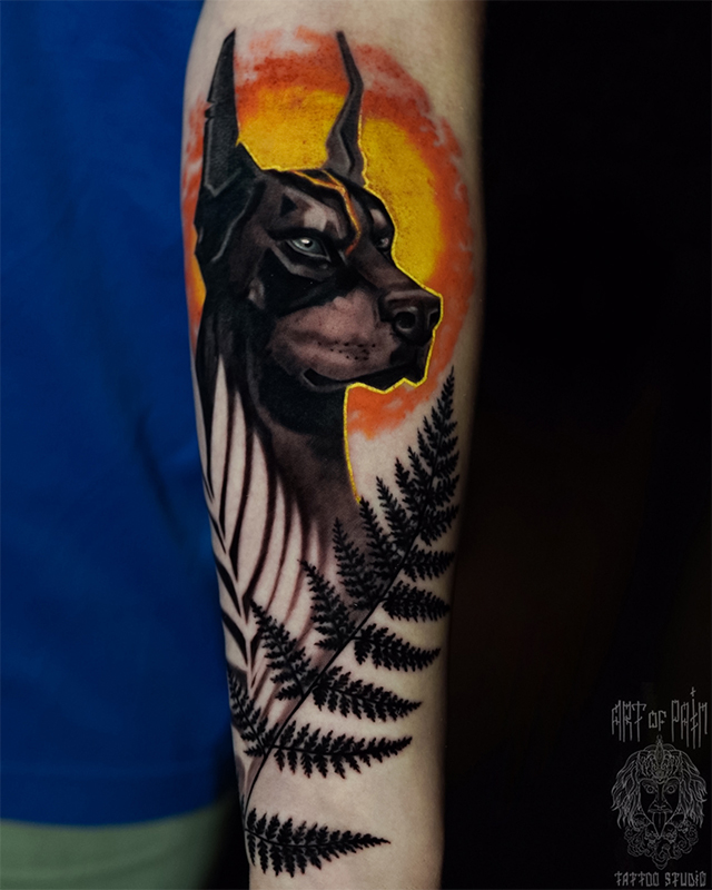 Татуировка мужская реализм на предплечье доберман (Анастасия Юсупова) 7662