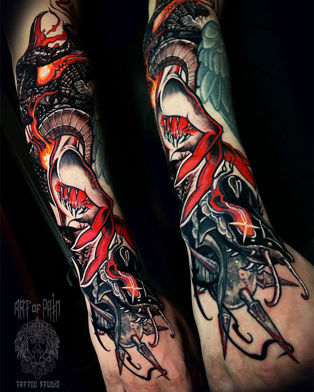 Татуировка мужская графика и хоррор на предплечье монстр (Кирилл Плотников) 7673