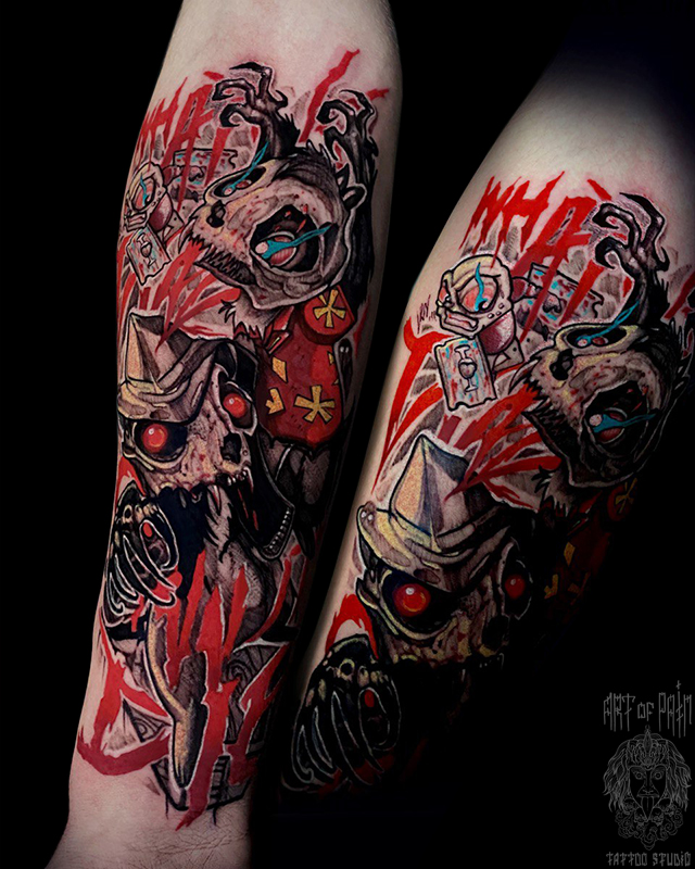 Татуировка мужская хоррор на предплечье черепа (Кирилл Плотников) 7714