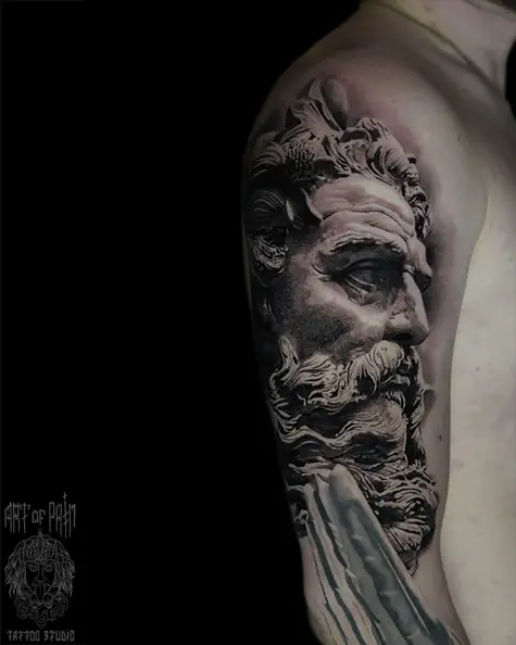 Татуировка мужская реализм на плече Посейдон (Александр Pusstattoo) 7731