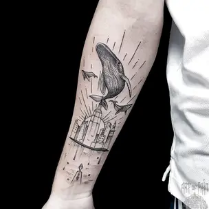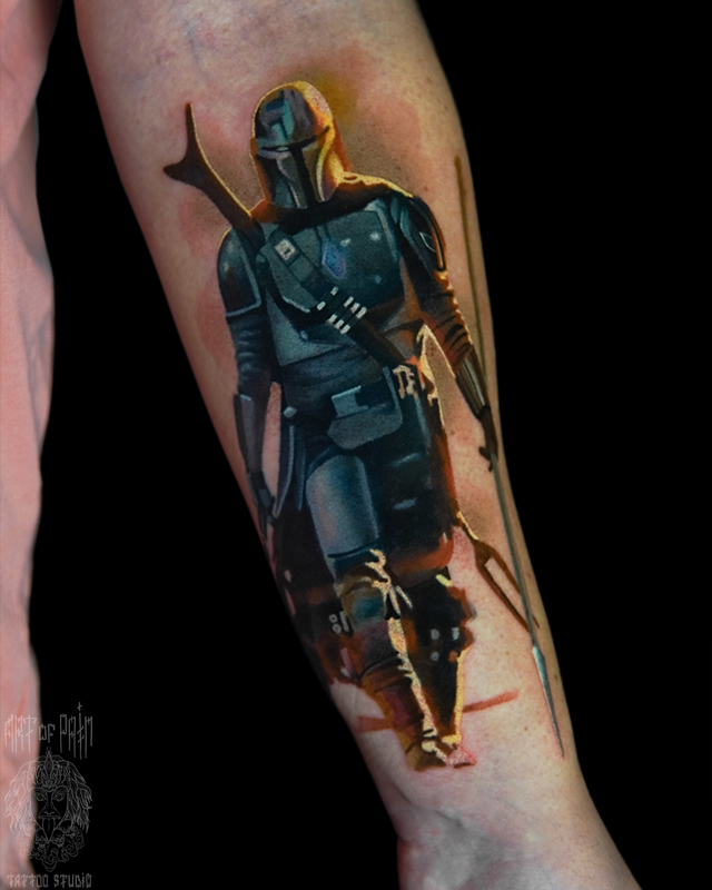 Татуировка мужская реализм на предплечье Мандалорец (Александр Pusstattoo) 7733