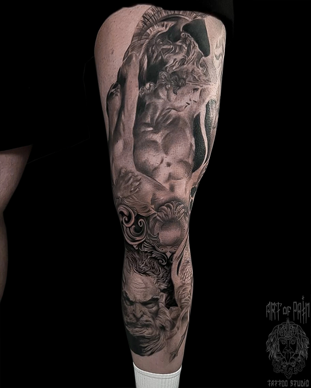 Татуировка мужская реализм тату-ногав боги и герои 7754