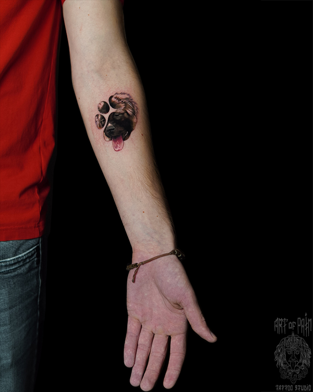 Татуировка мужская реализм на предплечье след, собака (Анастасия Юсупова) 7776