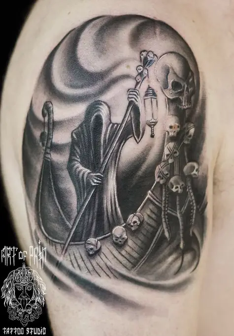 Татуировка мужская хоррор на плече харон 778