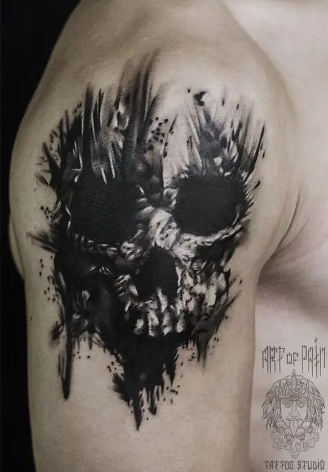 Татуировка мужская хоррор на плече череп 781