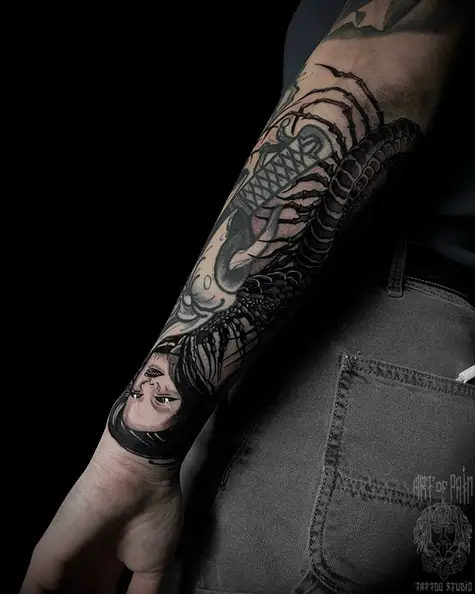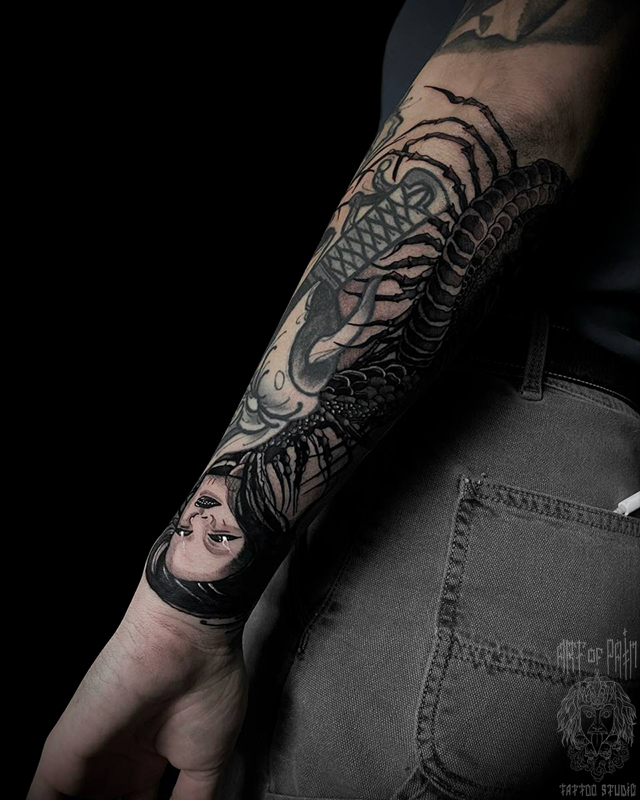 Татуировка мужская нео-япония на предплечье мукадэ (Кирилл Плотников) 7815