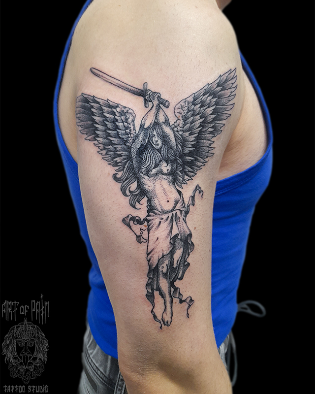 Татуировка мужская графика на плече ангел (Николай Орф) 7816