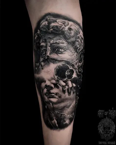 Татуировка мужская реализм на голени статуя (Евгений Кузьменков) 7854