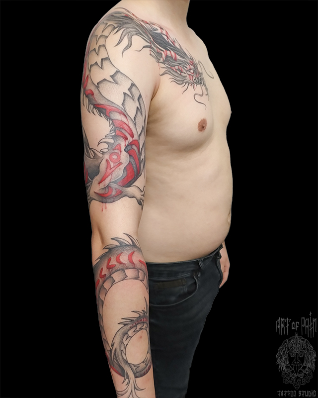 Татуировка мужская графика тату-рукав дракон (Анастасия Родина) 7898