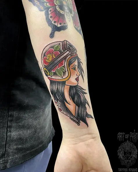 Татуировка мужская олдскул на предплечье девушка (Евгения Шмидт) 7908