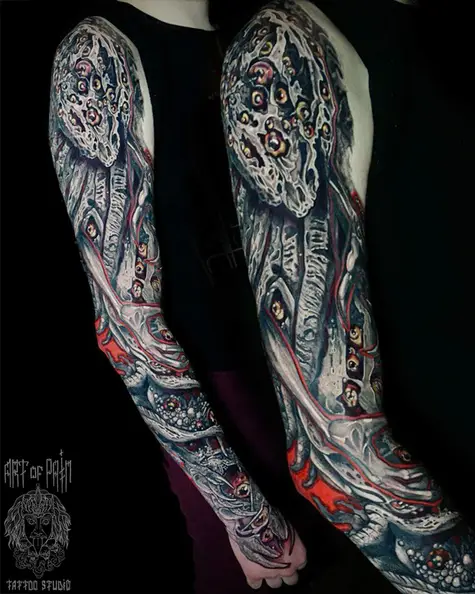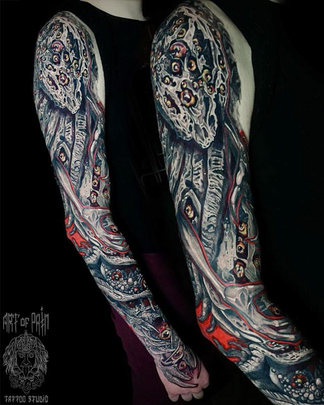 Татуировка мужская органика и хоррор тату-рукав монстр (Кирилл Плотников) 7913