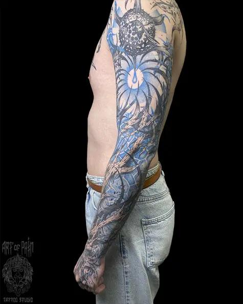 Татуировка мужская графика на тату-рукав абстракция, растения (Николай Орф) 7978
