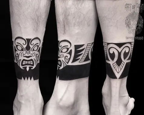 Татуировка мужская графика на щиколотке браслет в стиле полинезия 798