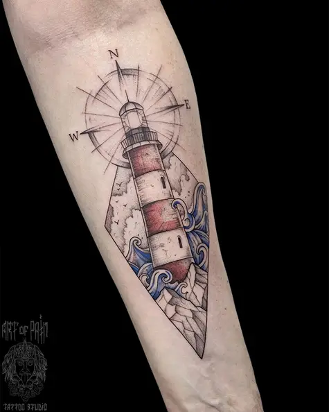 Татуировка мужская графика на предплечье маяк (Мария Котова) 8024