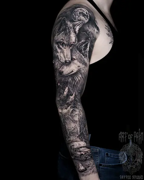 Татуировка мужская реализм тату-рукав волки (Слава Tech Lunatic) 8035
