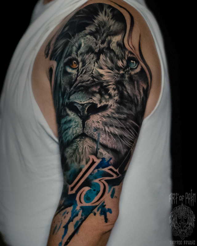 Татуировка мужская реализм на плече лев (Дмитрий Шейб) 8047