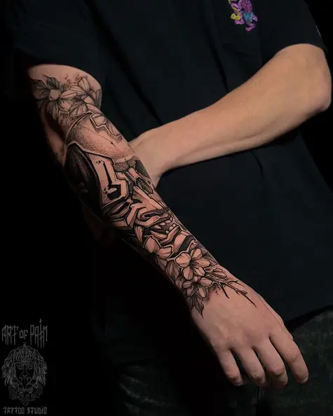 Татуировка мужская нео-япония на руке Хання и сакура (Денис Марченко) 8065