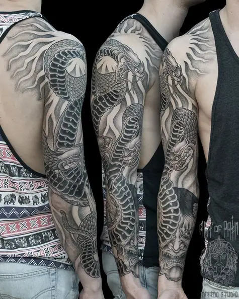 Татуировка мужская графика рукав змея 806