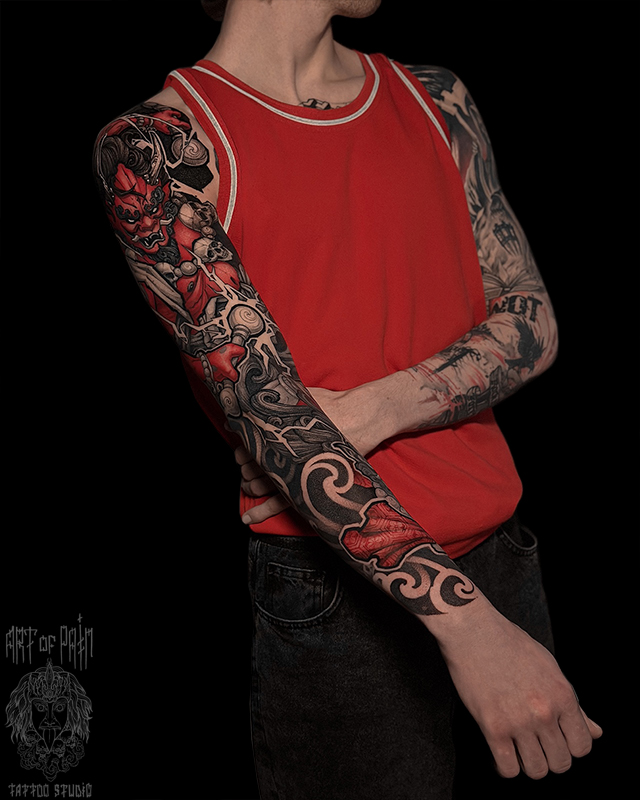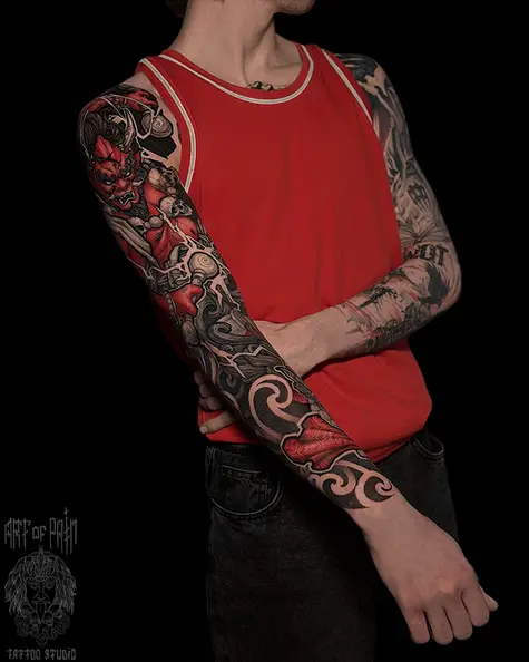 Татуировка мужская нео-япония тату-рукав Ондэко-мэн (Денис Марченко) 8077