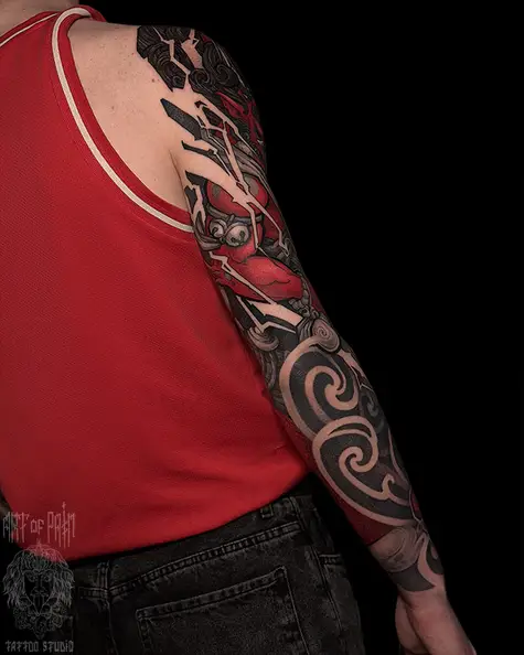 Татуировка мужская нео-япония тату-рукав Ондэко-мэн (Денис Марченко) 8084