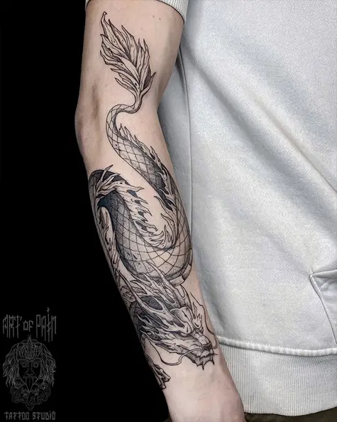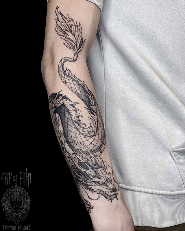 Татуировка мужская графика на руке дракон (Мария Котова) 8134