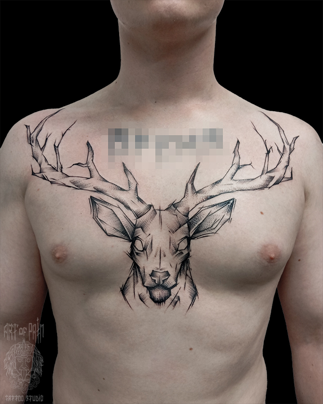 Татуировка мужская графика на груди олень (Николай Орф) 8161