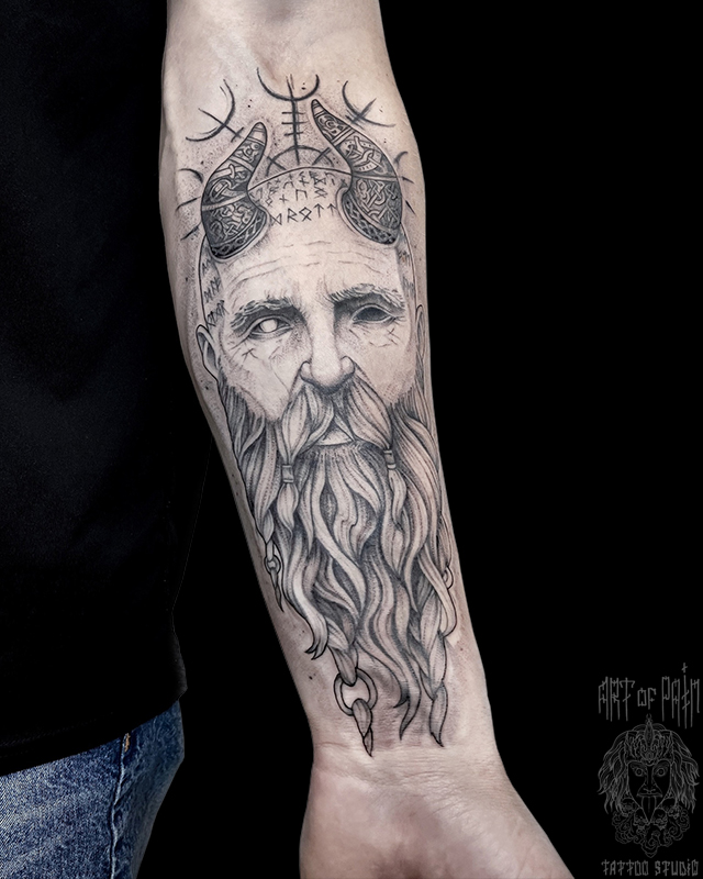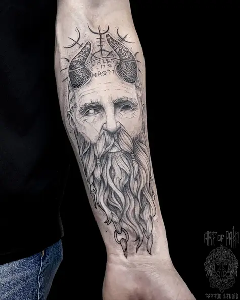 Татуировка мужская графика на предплечье сатир (Мария Котова) 8162