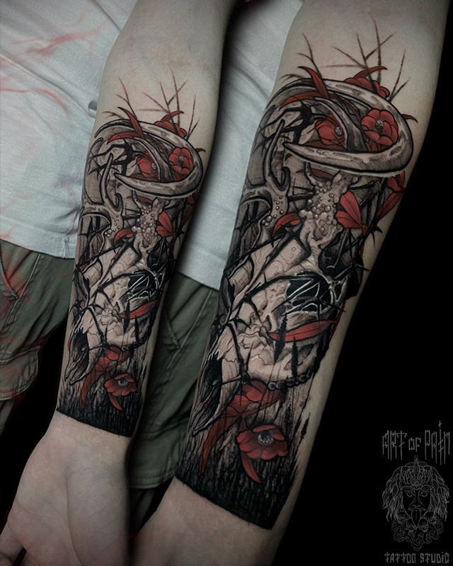 Татуировка мужская хоррор и графика на предплечье череп (Кирилл Плотников) 8176