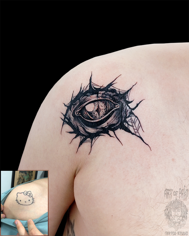 Татуировка мужская графика на ключице глаз (Николай Орф) 8195