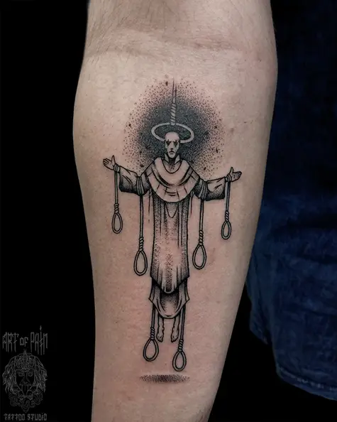 Татуировка мужская графика на предплечье человек (Николай Орф) 8232