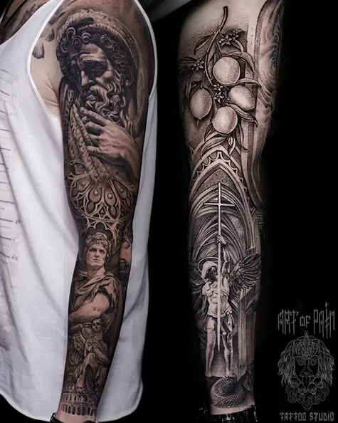 Татуировка мужская реализм тату-рукав портрет, статуя, архитектура, лимон (Слава Tech Lunatic) 8246