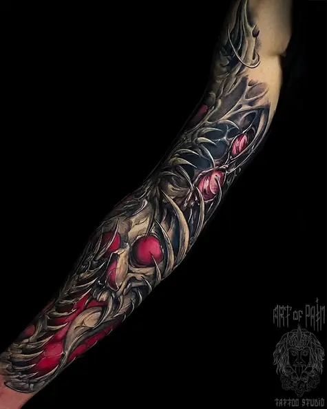 Татуировка мужская хоррор тату-рукав черепа (Евгений Кузьменков) 8254