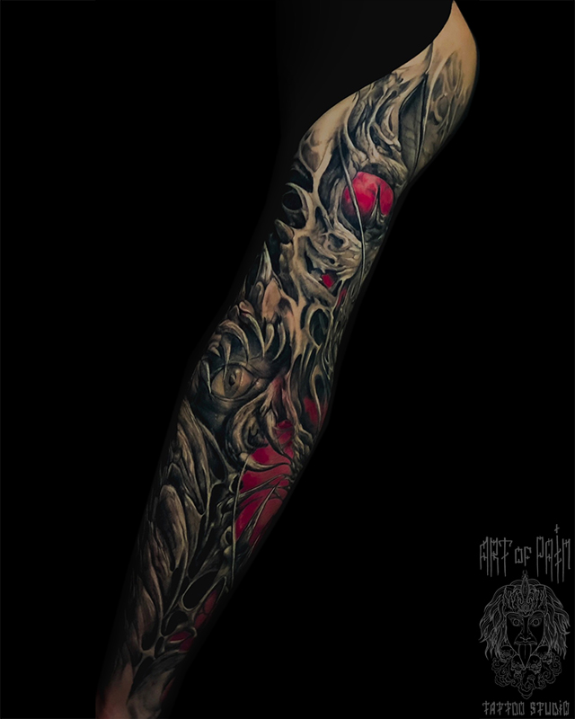 Татуировка мужская хоррор тату-рукав черепа (Евгений Кузьменков) 8256