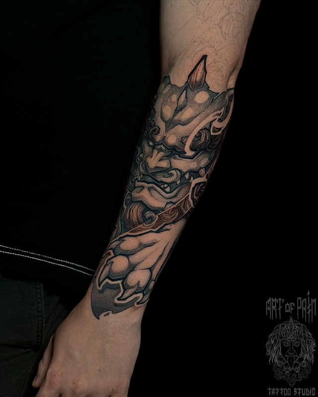 Татуировка мужская нео-япония на предплечье собака Фу (Денис Марченко) 8259