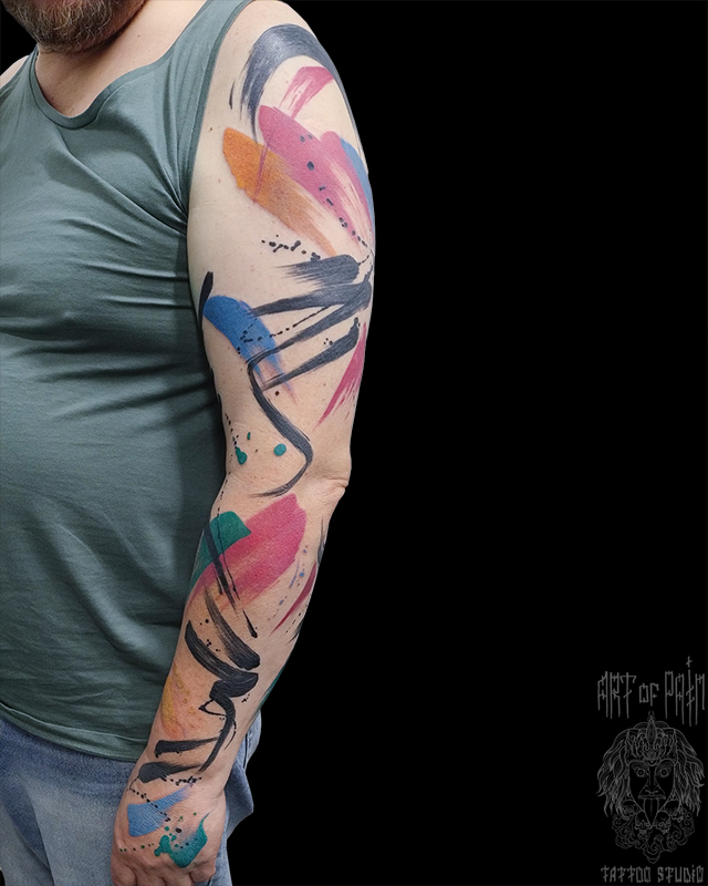 Татуировка мужская акварель тату-рукав абстракция (Анастасия Родина) 8264