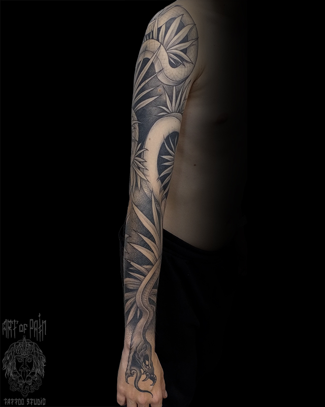 Татуировка мужская графика тату-рукав змея (Анастасия Родина) 8267