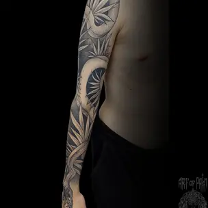 Татуировка мужская графика тату-рукав змея (Анастасия Родина) 8269